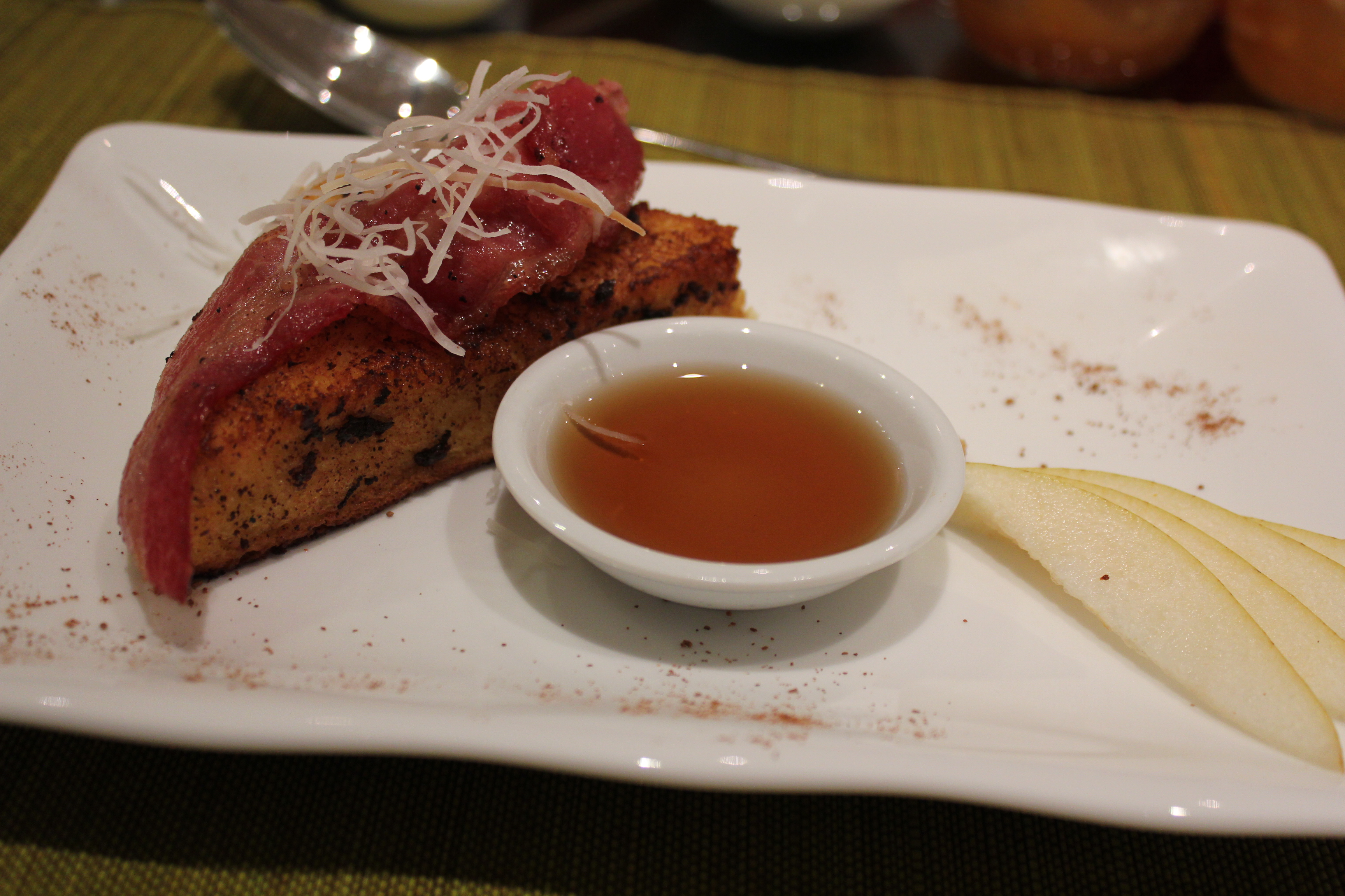 * For a Western flavor, I had half the portion of French toast: thick cut French toast served with real Canadian maple syrup, bacon and shredded coconut. The combination of flavors and textures among the sweet syrup and the salty and crunchy bacon, the sweet and softly crispy coconut shreds, and the sweet and buttery toast is such a pleasure in the mouth.
