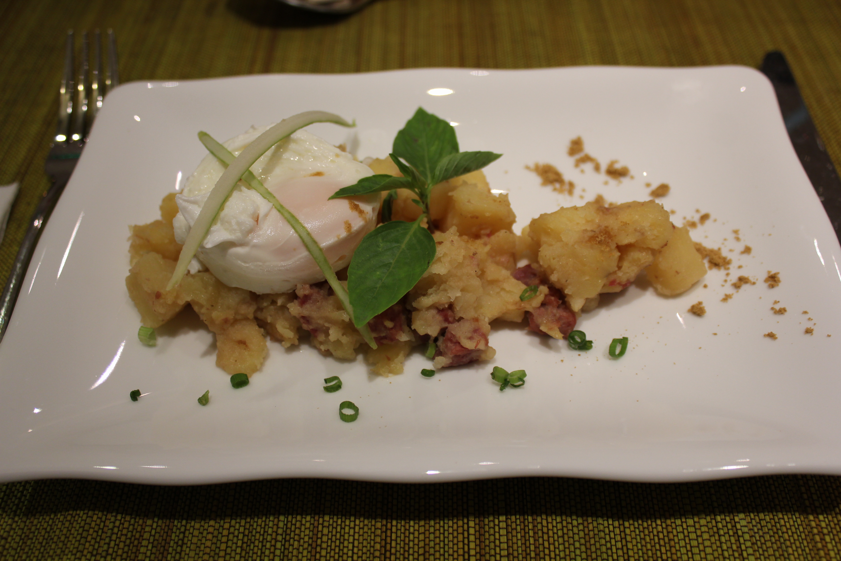 * Chef’s eggs benedict with perfectly poached egg is another pleasure. Capers and roasted garlic make all the difference.