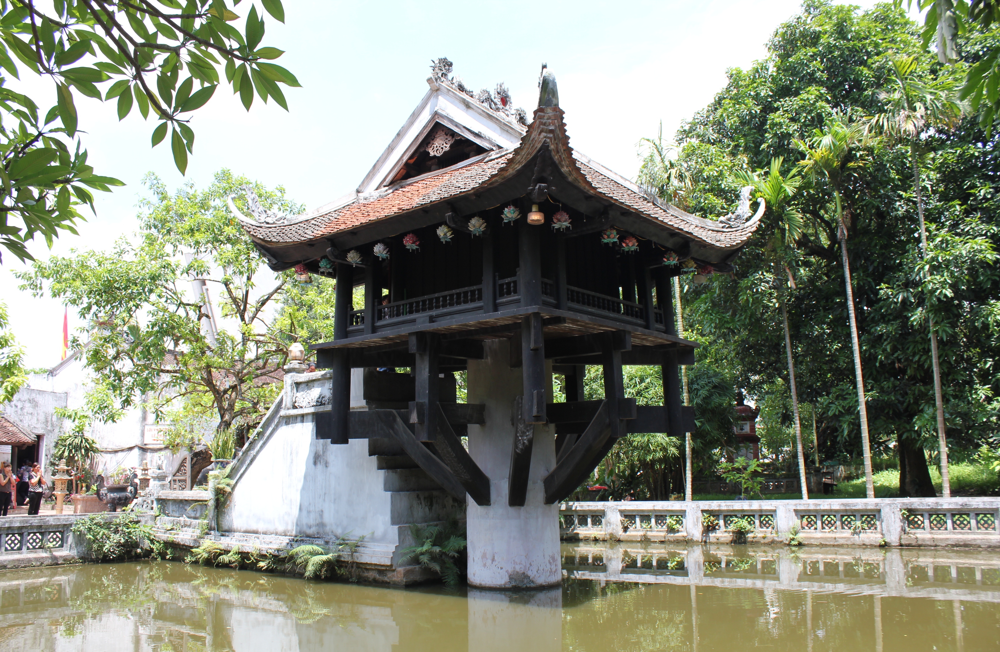 Bây giờ bạn hãy nghĩ xem, tòa nhà với kiến trúc ‘trên lớn dưới bé’ đầu tiên được xây ở Mỹ vào năm 1970, trong khi đó lính Pháp phá chùa Một Cột vào năm 1954. Vậy thì người Pháp ‘văn minh’ thật đấy chứ! Họ văn minh đến mức thấy được giá trị vượt thời gian của chùa Một Cột, để rồi muốn phá nát nó đi! Thật nhỏ mọn đúng không! Hồ Xuân Hương có ở đây chắc cũng phải điên tiết, chống nạnh hai tay mà ‘Tiên sư cha chúng nó!’ cả bọn Tây xưa và Tây nay mất thôi! May mà bản vẽ của chùa vẫn còn giữ được nên năm 1955 chùa đã được xây lại theo kiến trúc cũ. Nhưng thôi bỏ qua chuyện quá khứ.