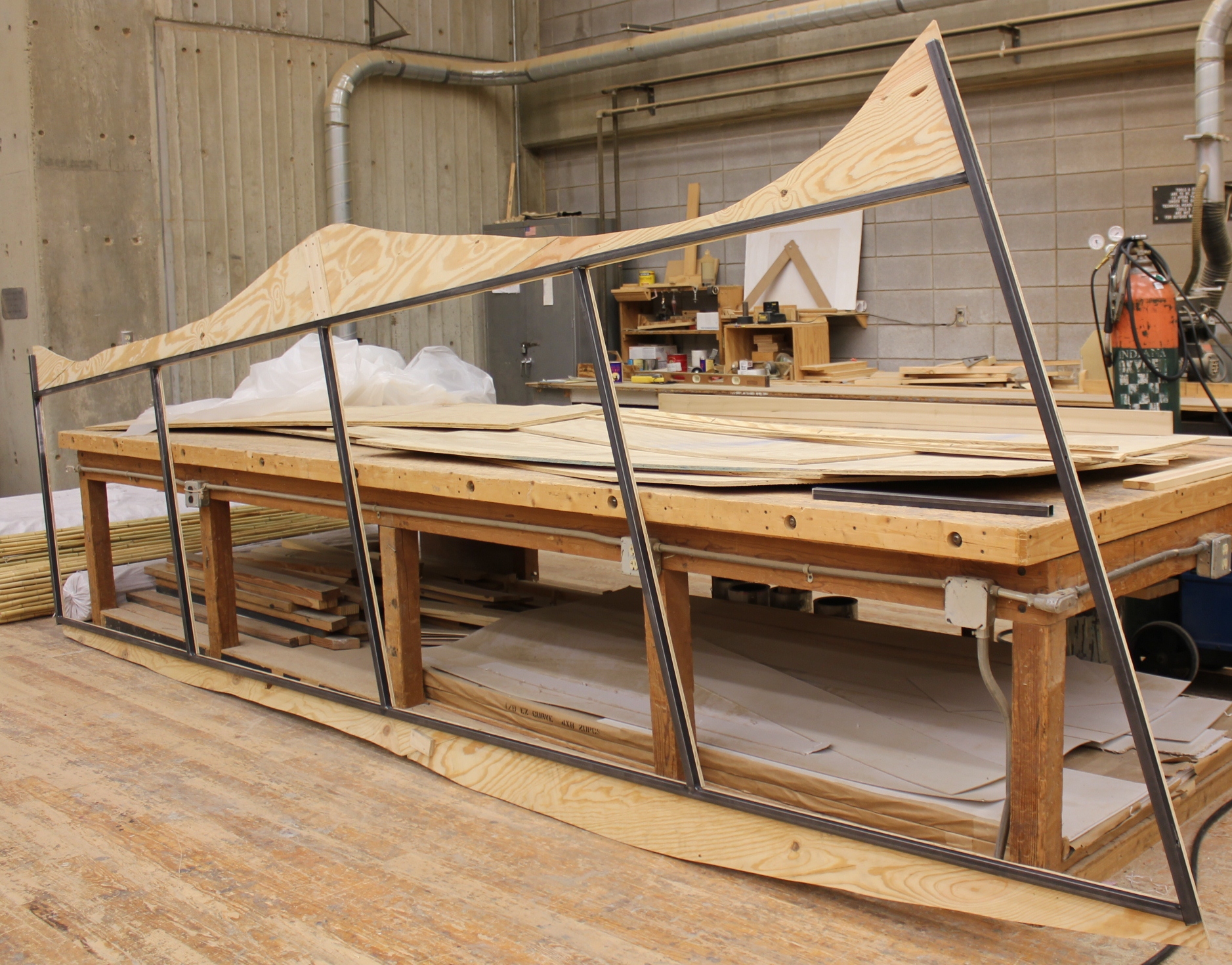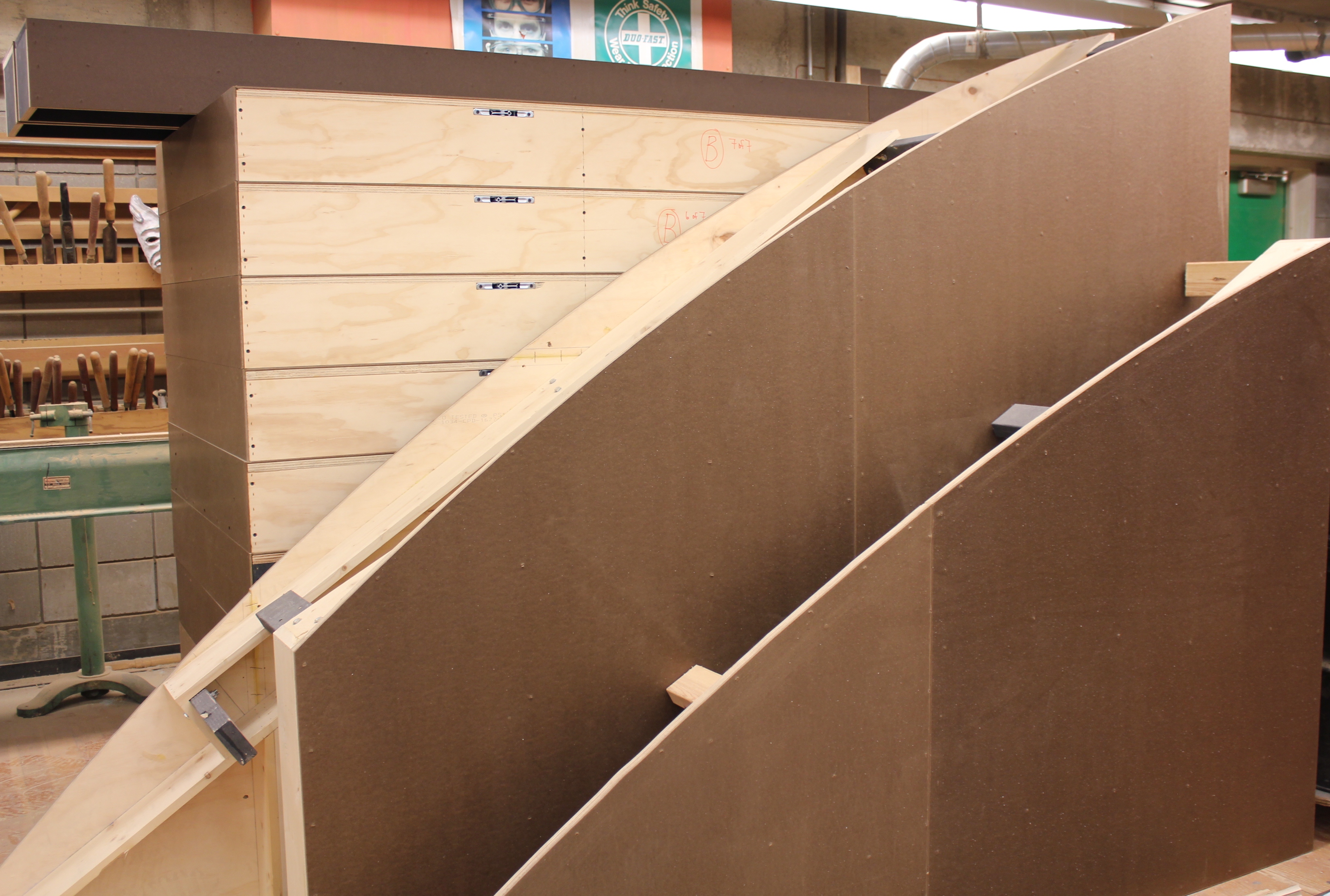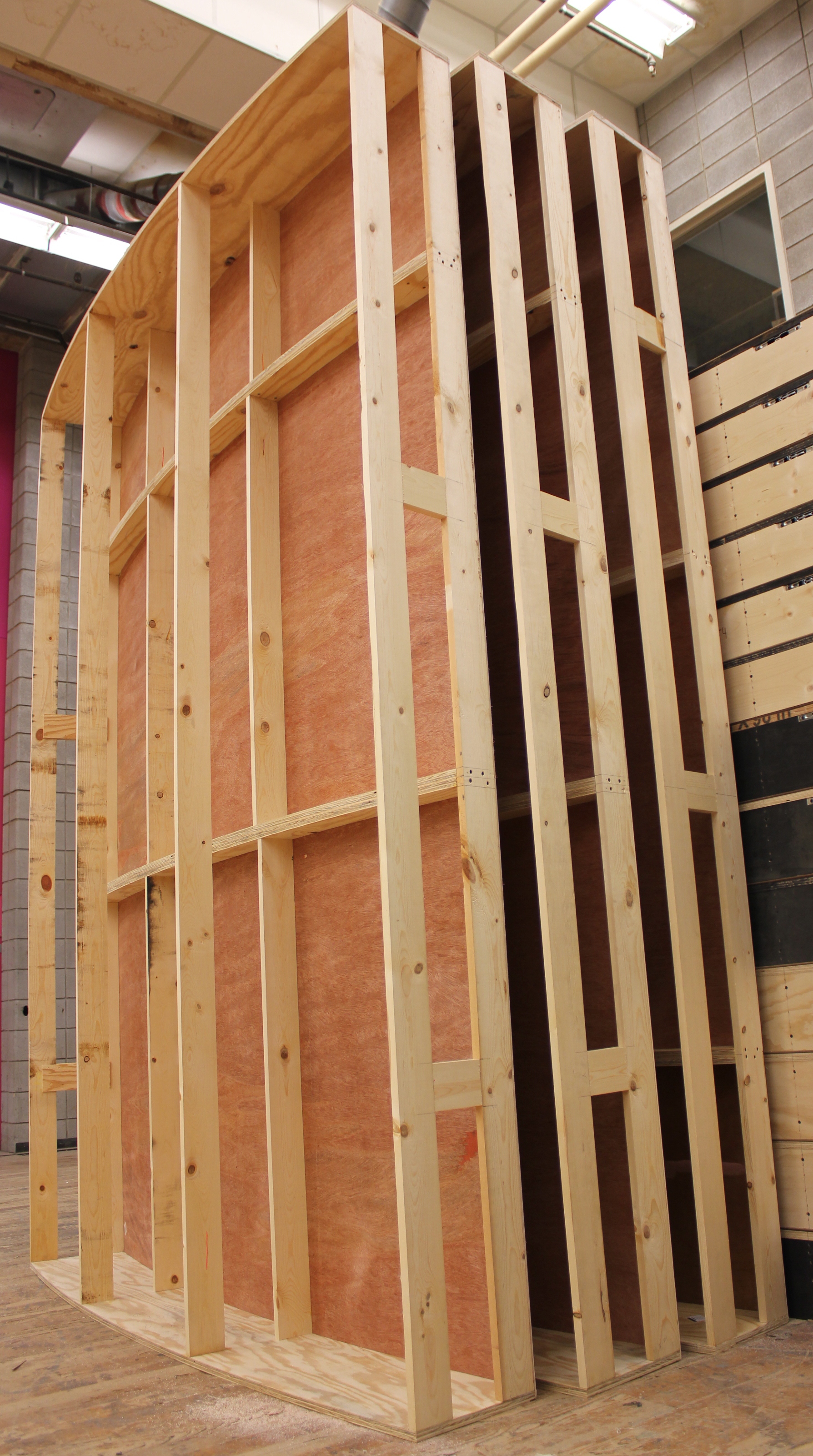 And Ken D’Eliso, Scenic Carpenter in the Wood Shop, built some irregular others. In the picture is a small part of the irregular platforms: