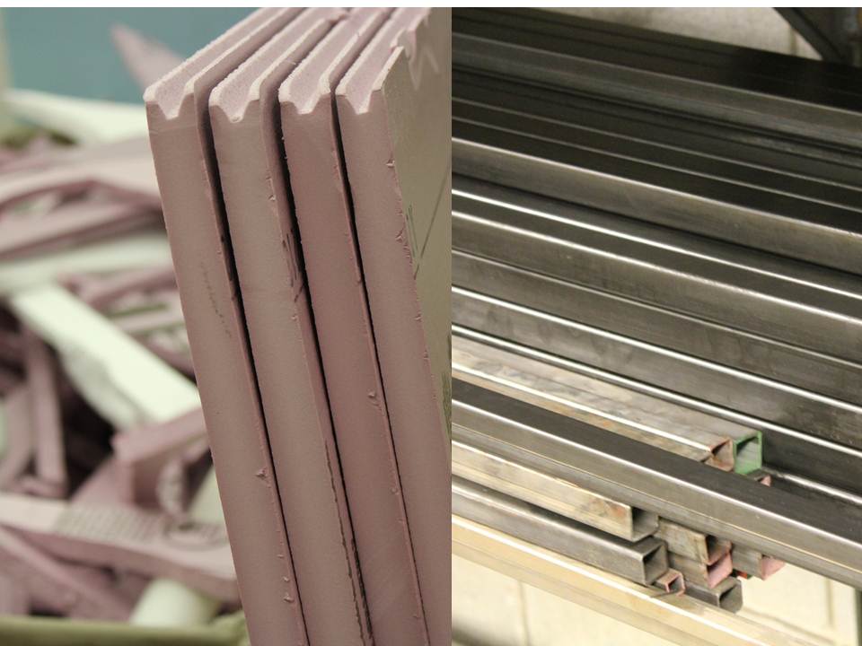 Andrew has to solder bars of steels together to make a frame, then clamps them like this to straighten them up: