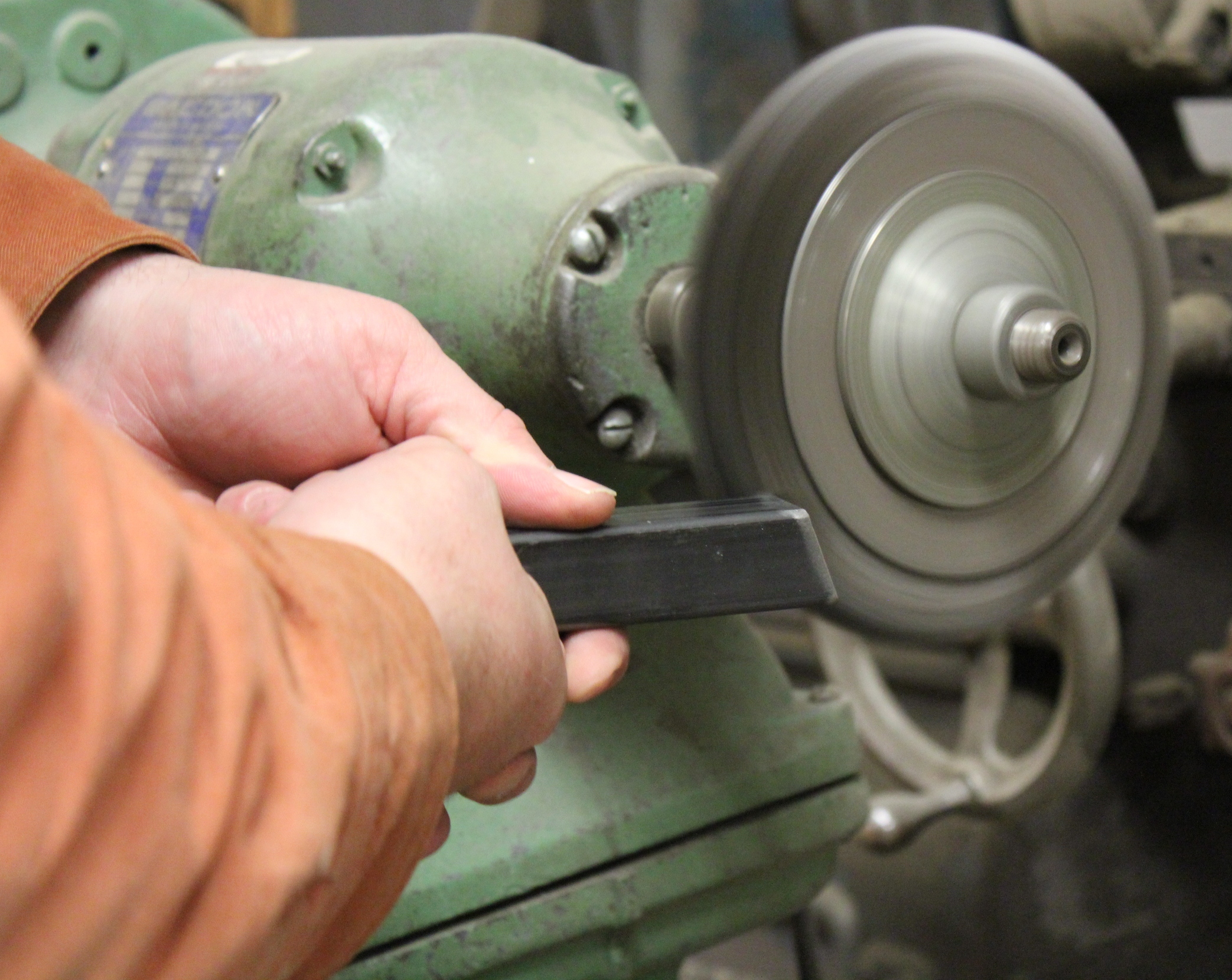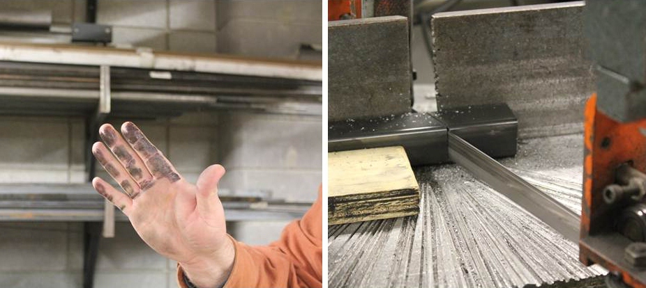 What is the hand for? It is Andrew Hastings’s and how he demonstrates (left) that he has to clean the steel bar before he saws it (right):