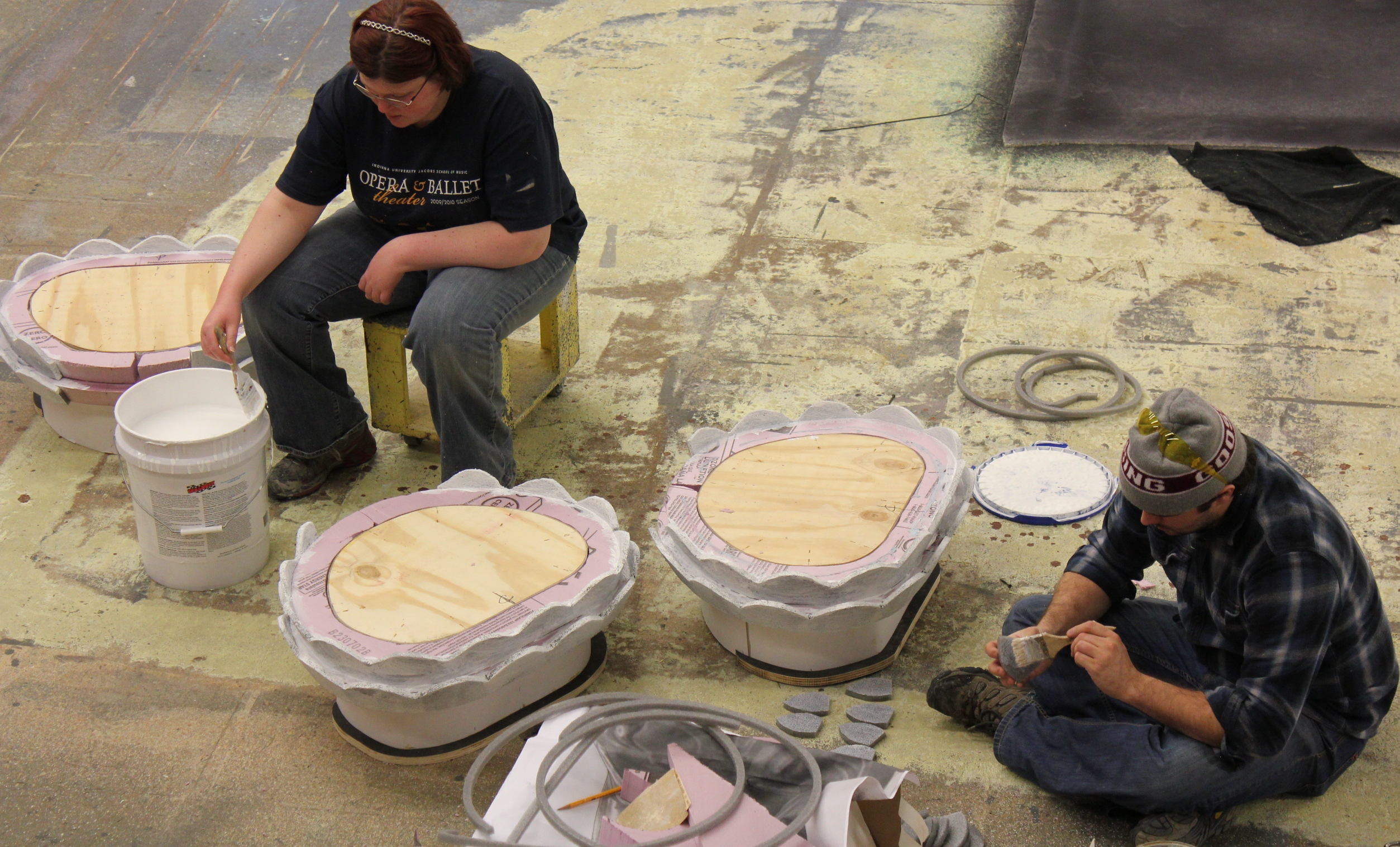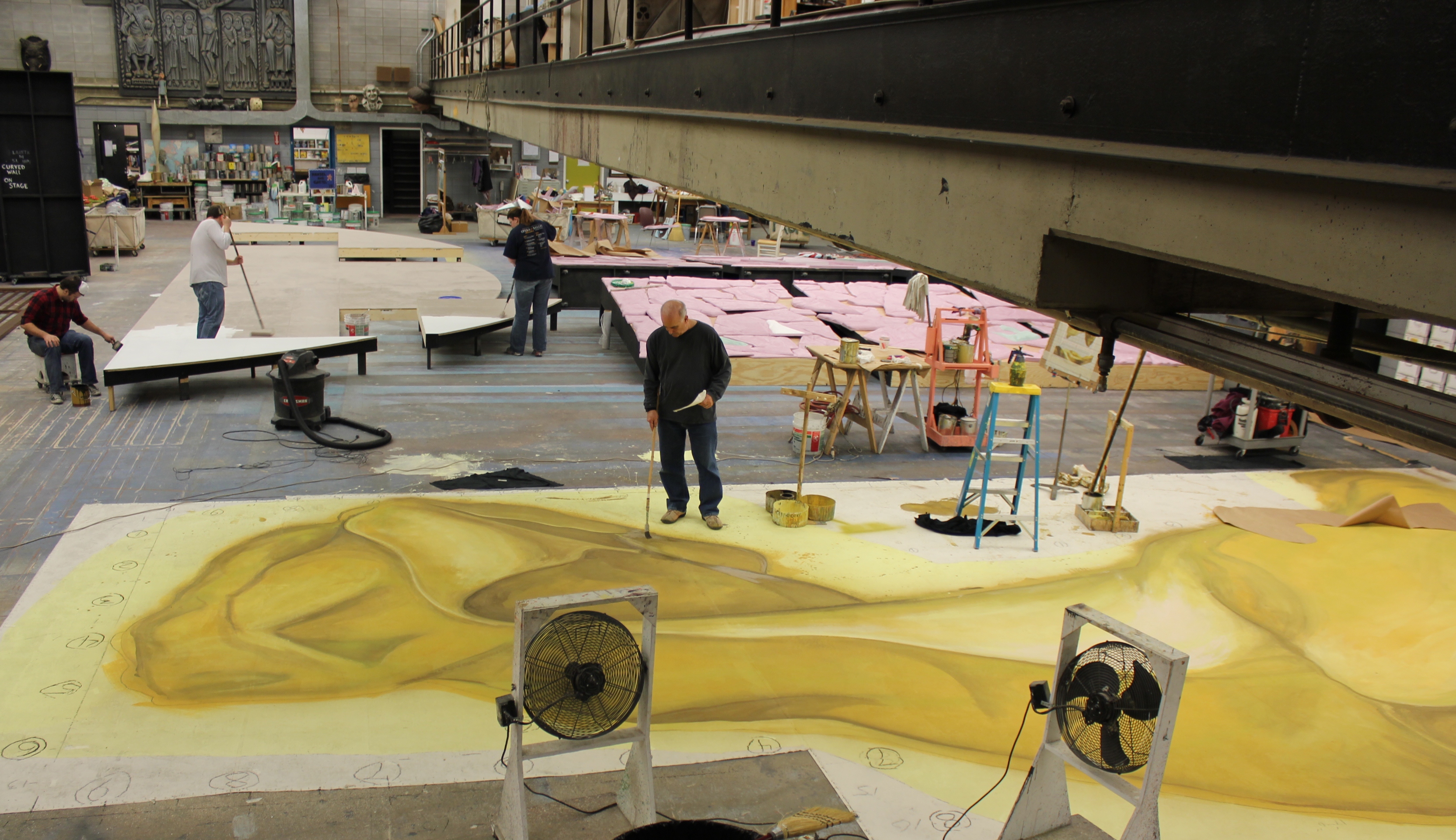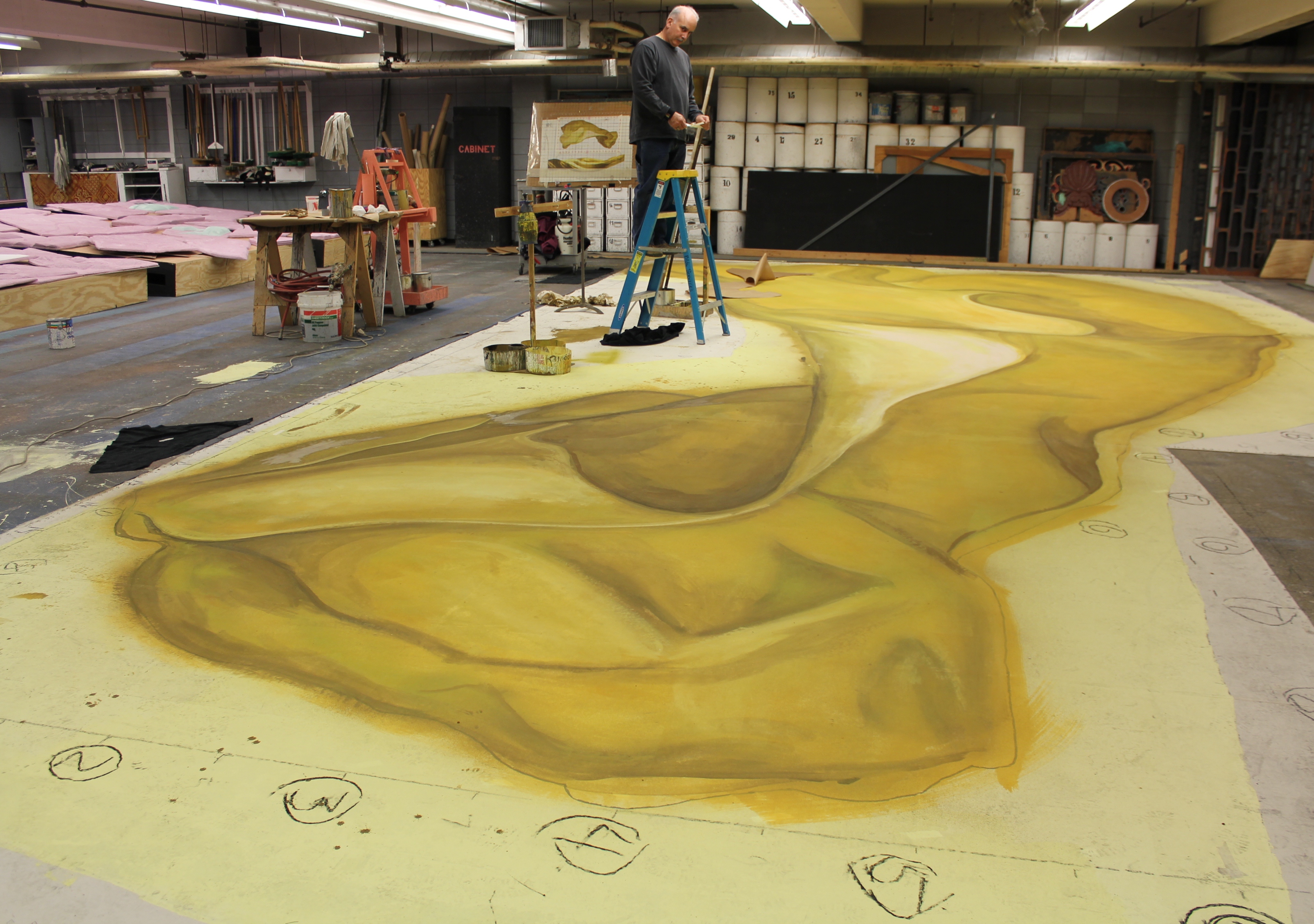 Drop being painted at IU Opera Theater Shop in Bloomington, Indiana: