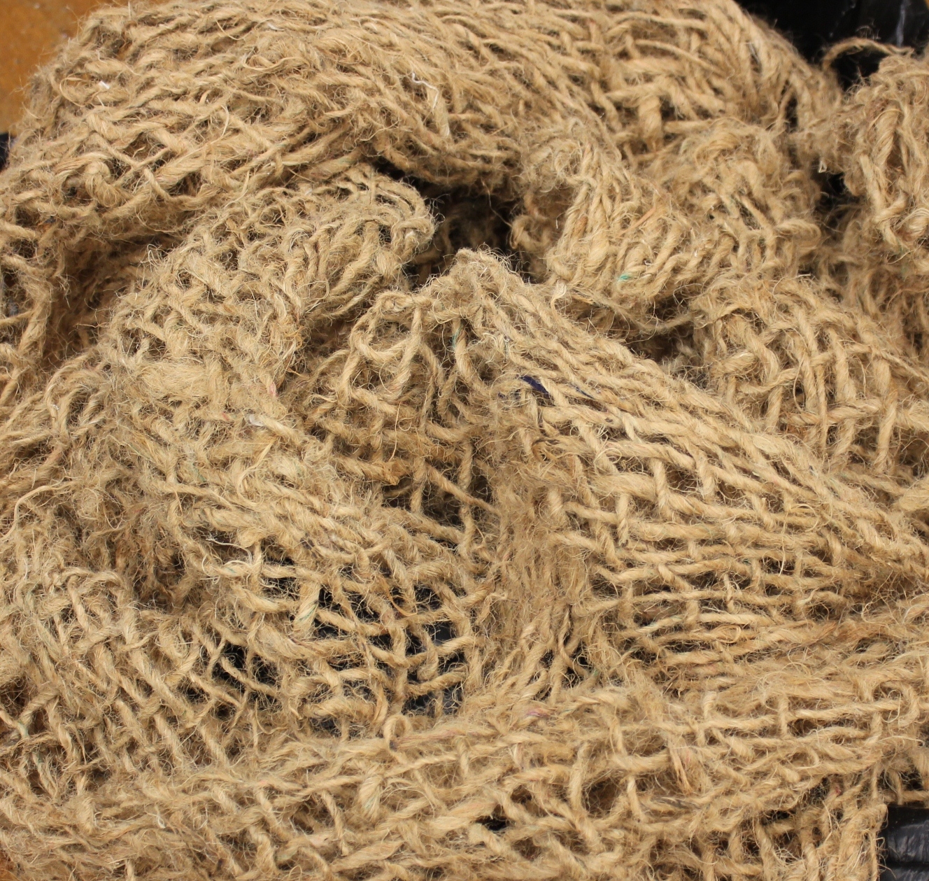 A bundle of coarse material (jute) is bought for its desired texture and colors: