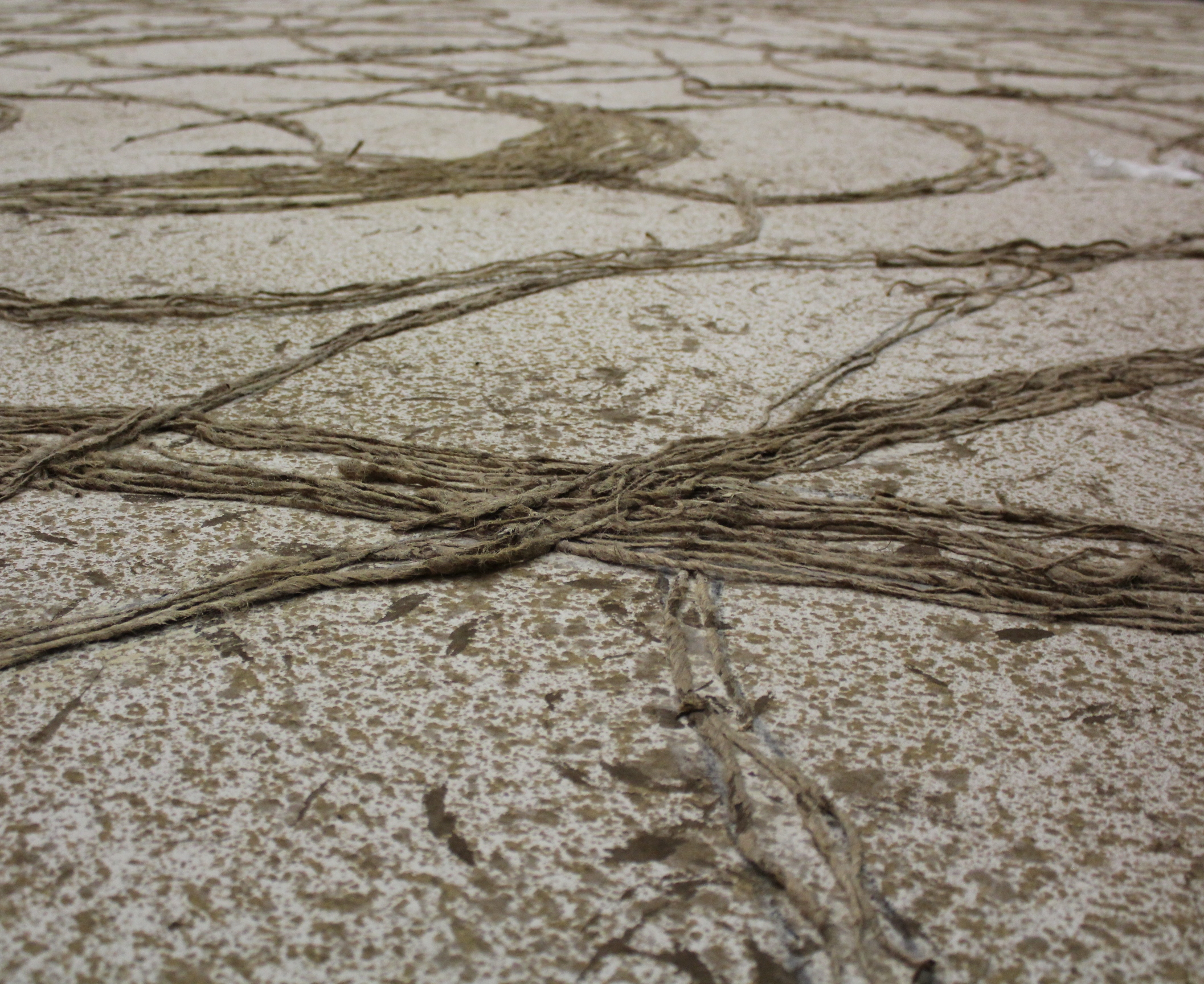 Once the desired texture is made (upper), a layer of thin muslin fabric is glued to the foam (lower):