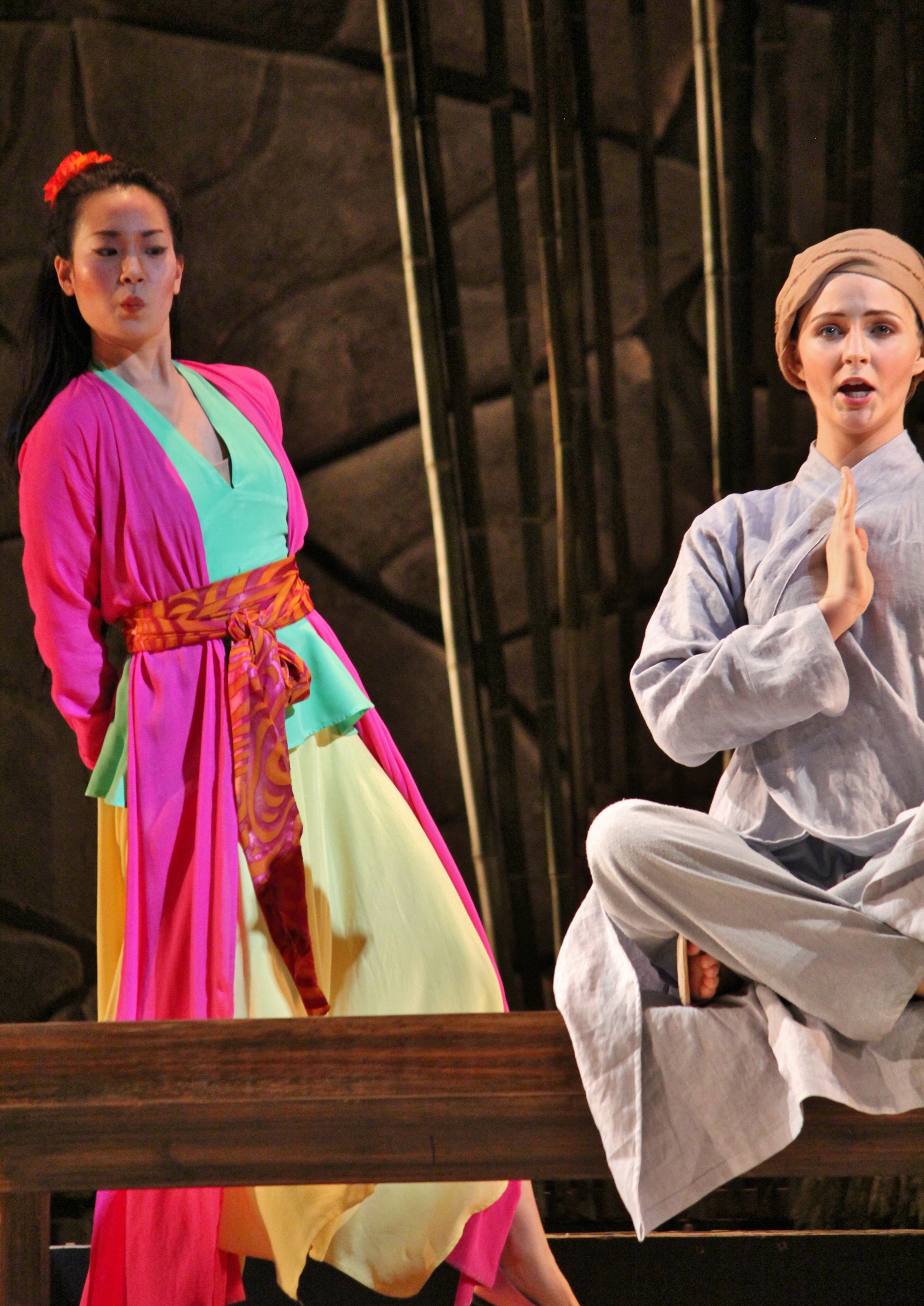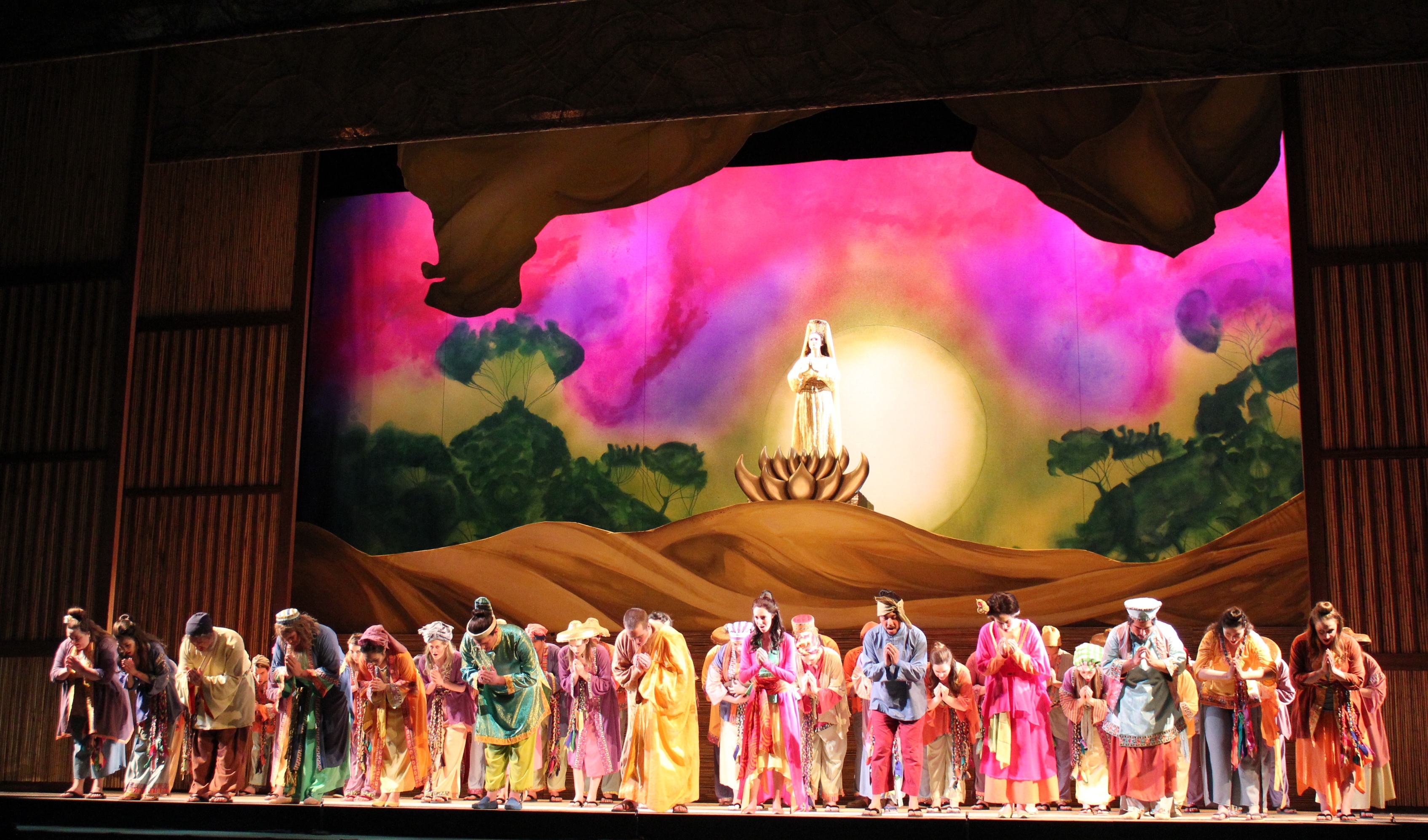 Một ghi chú: The Tale of Lady Thị Kính là một vở opera, chứ không phải musical=nhạc kịch. Một điều kỳ diệu về ca sĩ opera là họ hát không cần micro như ca sĩ hát trong nhạc kịch. Những gì người ta nghe trong một vở opera chính là giọng hát thật của chính những ca sĩ opera đó. Ca sĩ opera cũng bắt buộc phải đọc được nhạc, và nhạc họ hát thì khó hơn gấp trăm lần nhạc kịch. Còn có nhiều sự khác biệt nữa giữa hai thể loại âm nhạc này (opera và nhạc kịch) mà quý vị có thể tra cứu thêm nếu muốn. Nên biết rằng, gọi ca sĩ opera là ‘ca sĩ’ bình thường thôi thì họ sẽ cảm thấy bị xúc phạm đấy, bởi vì không phải dễ mà trở thành ‘ca sĩ opera’. Bây giờ quay lại vấn đề bình về vở opera The Tale of Lady Thị Kính.