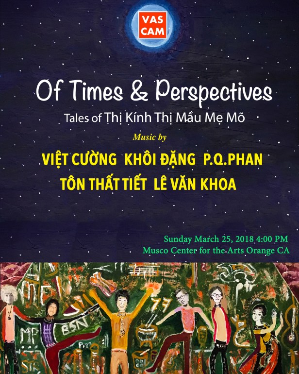 More details of what to expect at VASCAM concert 2018 *Of Times and Perspectives* at Musco Center for the Arts are a humorous Mãng Ông, a high-spirited Thị Mầu, a word play between Lý Trưởng and Mẹ Mõ, Sư Cụ’s debate on rules and a second chance, and contemplation of life and humanity by Thị Kính. It is a story that makes you cry, laugh, and ponder all at the same time via memorable characters.