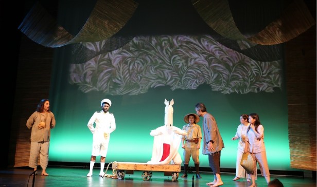Tất cả mọi thứ về buổi trình diễn lần đầu đều hứng thú. Mấy ngày nay mọi người đã bắt đầu tập dợt Trong Bụng Ngựa. Hôm kia, 18 tháng 8 năm 2021, là buổi tổng dợt với đầy đủ trang phục với phông và đèn đúng kiểu lần đầu. Rất đẹp và hào hứng. Công đầu thuộc về Đạo diễn sân khấu P.Q. Phan, nhà Thiết kế phông cảnh Mark Smith, và nhà Thiết kế ánh sáng Skylar Delk.