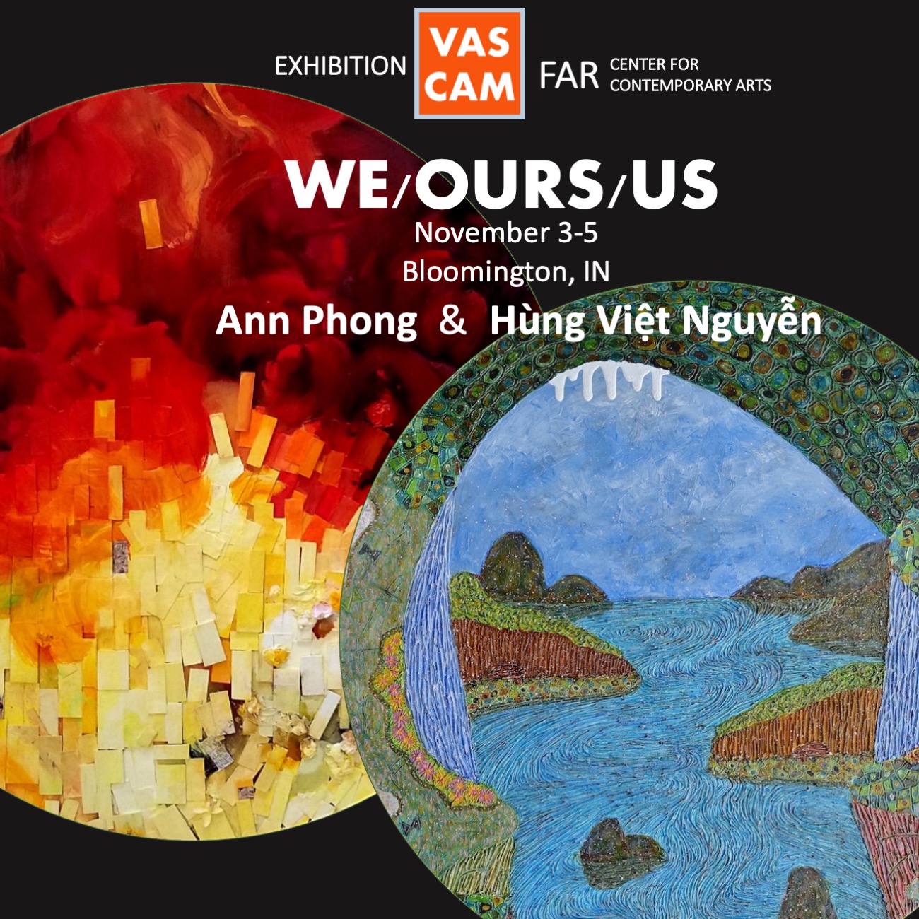 | VASCAM Exhibition November 3-5 FAR Center for Contemporary Arts 504 W 4th St. Bloomington IN WE/OURS/US—to put it colloquially, HOMES ARE US—is VASCAM’s first collaboration with FAR Center for Contemporary Arts for a special exhibition that combines physical and digital presentations of art works by Hùng Việt Nguyễn and Ann Phong, with live improvised performances from a singer, a bassist, and two dancers. Finding inspirations in landscapes of Vietnam and the U.S., Hùng creates surreal and provocative images. Ann dwells on past memories and current political, cultural and environmental issues to inch her dreamy and poignant personal sphere. As first-generation Vietnamese Americans, both have found HOME in their art and in SolCal. | Chuyển ngữ tiếng Việt do Thảo Phan thực hiện cho VASCAM. Lần đầu tiên VASCAM hợp tác với Trung Tâm Nghệ Thuật Đương Đại FAR để tổ chức chương trình triển lãm tại thành phố Bloomington thuộc tiểu bang Indiana. Buổi triển lãm mang tên WE/OURS/US, hay nói một cách nôm na là HOMES ARE US – NHÀ Ở TRONG CHÚNG TA / NHÀ Ở NƯỚC MỸ. Tác phẩm triển lãm bao gồm tranh (treo trên tường) của hoạ sĩ Ann Phong và tranh được phóng to lên tường của họa sĩ Hùng Việt Nguyễn. Đi kèm với triển lãm tranh là các màn trình diễn theo ngẫu hứng vào thứ Sáu ngày 4 tháng 11 của bốn nhạc sĩ: ca sĩ và người chơi đàn xếp accordion, nhạc sĩ đại vĩ cầm, và hai vũ công. Lấy cảm hứng từ phong cảnh Việt Nam và Mỹ, sáng tác của Việt Hùng là những hình ảnh siêu thực đầy tính thách thức. Ann Phong thì khai thác dòng ký ức của cô cũng như những vấn đề đương đại về chính trị, văn hoá, môi trường để lần hồi vào thế giới nội tâm đầy mộng mơ lẫn khắc khoải của mình. Là thế hệ Mỹ gốc Việt thứ nhứt, cả hai tìm thấy NHÀ của mình trong nghệ thuật và tại vùng miền nam California. |